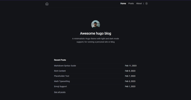 Minimal Hugo blog theme with light and dark mode support