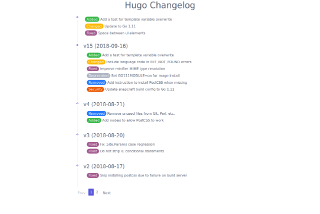 Theme to display a changelog