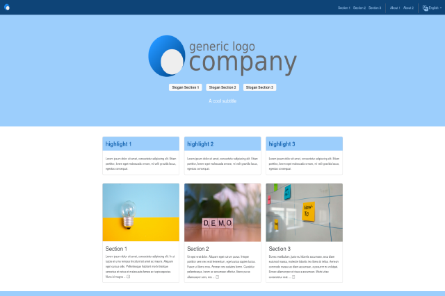 A landing page with sections
