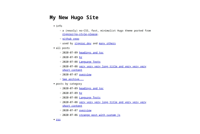 a (nearly) no-CSS, fast, minimalist Hugo theme ported from riggraz/no-style-please.