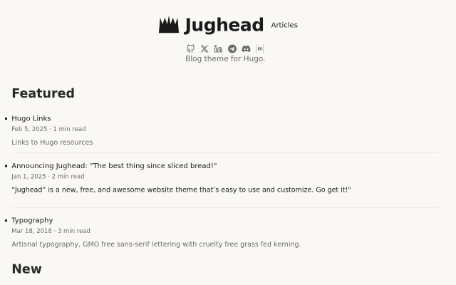 Jughead is a simple and powerful blog theme for Hugo. It features Giscus comments, Mermaid diagrams, and KaTeX formulae.